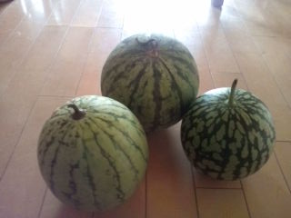 先日、近所の畑をやっているKさんからスイカ