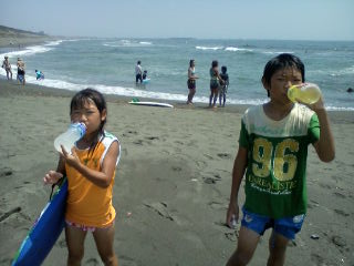子供たちは波打ち際で楽しそうに波と戯れていました。