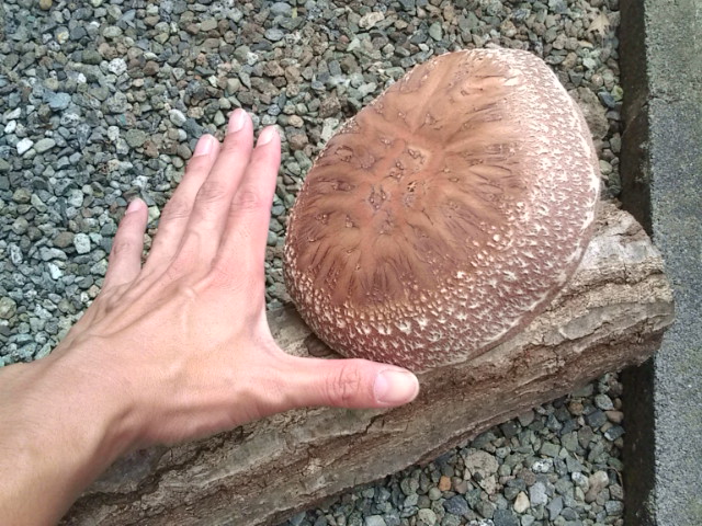 それは、何年か前に貰ったシイタケが成る木についにシイタケが