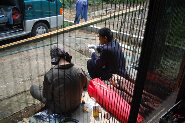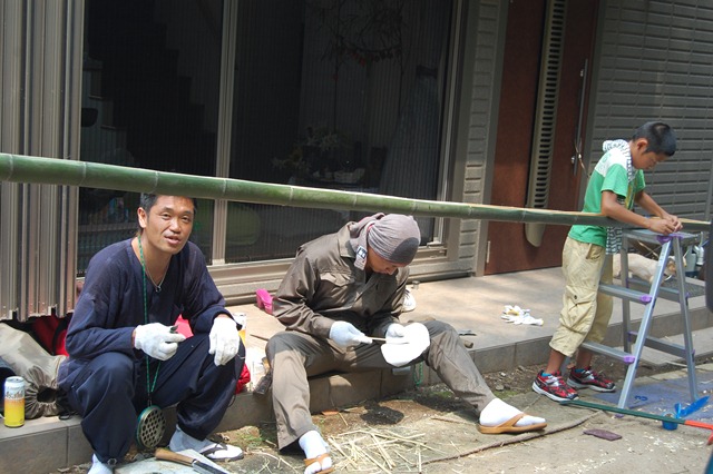 朝からみんなで、流しそうめんをするための準備